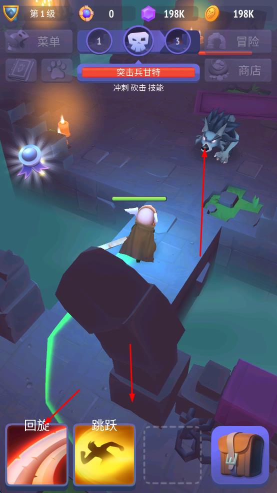 3、若需要调整角色位置或躲避敌人技能,点击“跳跃”按钮,让角色进行跳跃,到达合适的位置后,再次准备释放技能或继续与敌人战斗,确保能顺利击败敌人推进游戏。
