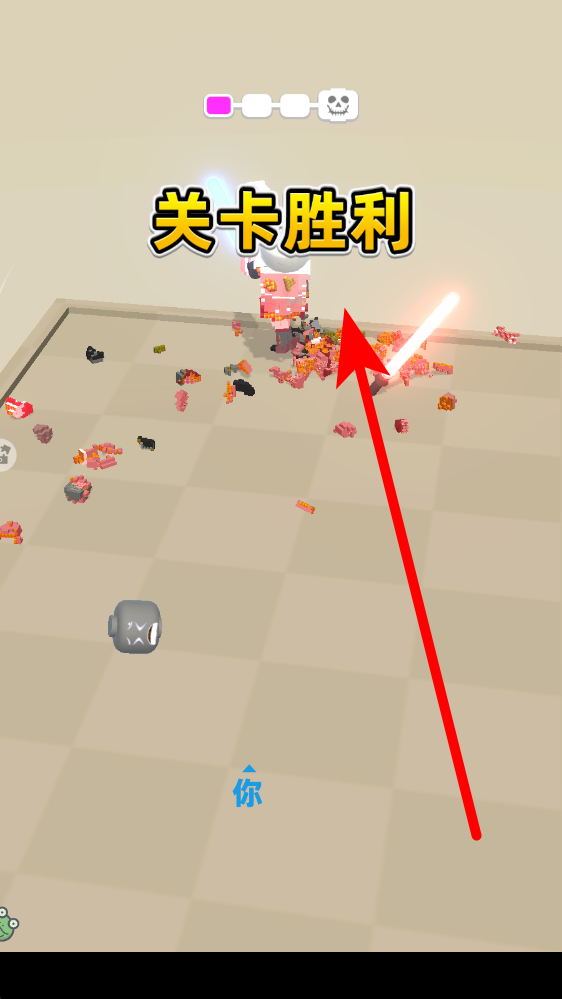 3、持续与对手进行激光剑对抗,当成功击败对手后,会显示关卡胜利,完成该关卡的挑战,体验激光剑对决的竞技刺激,为后续关卡做好准备。