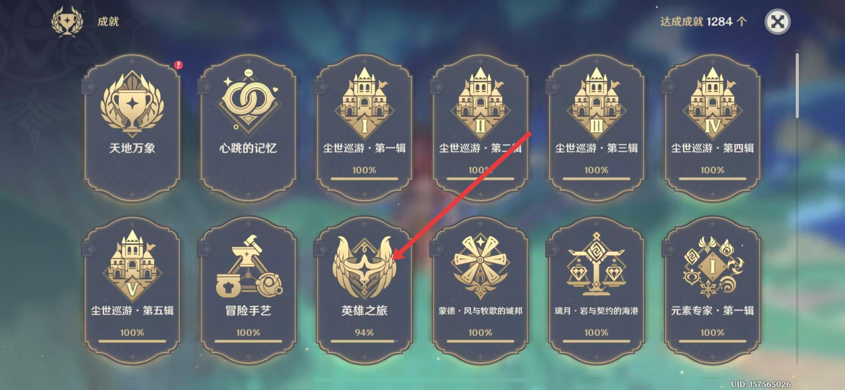 3、在成就界面,浏览并选择你想要查看的成就分类,比如英雄之旅。
