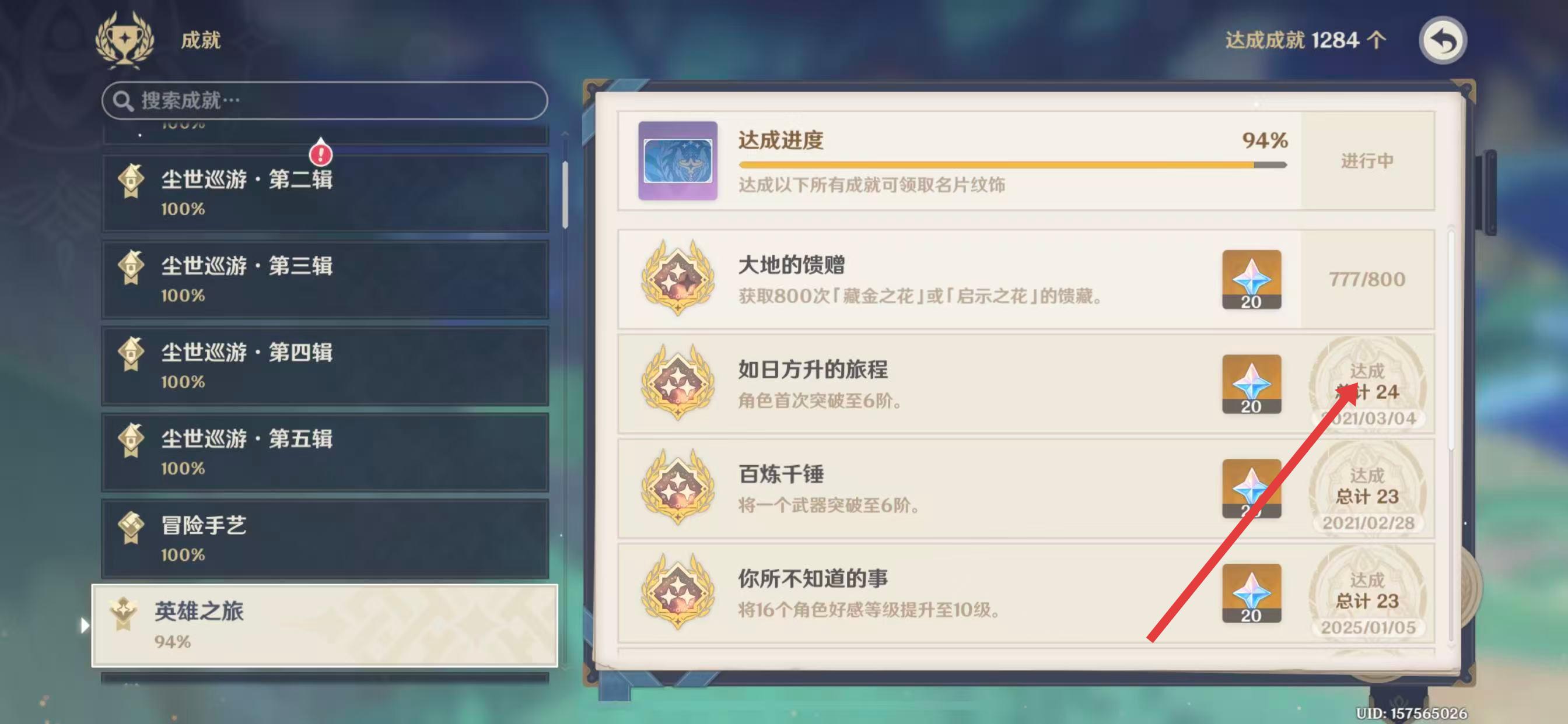 原神怎么看成就达成的时间