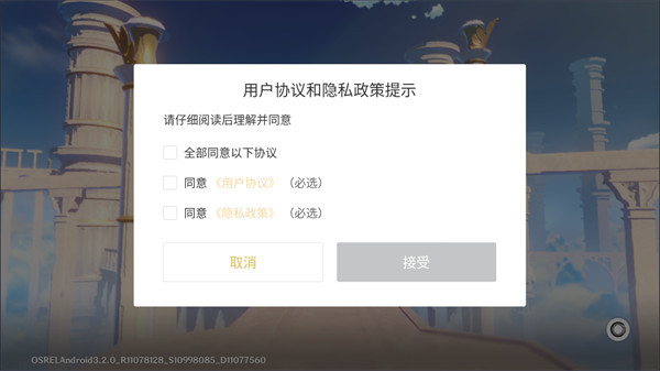 2、允许用户协议和隐私政策提示等,点击接受继续下一步。