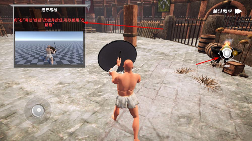 3、遇到敌人攻击时,滑动“格挡”按钮并按住,能使用右格挡等格挡方式,抵御敌人进攻,保障自身安全。