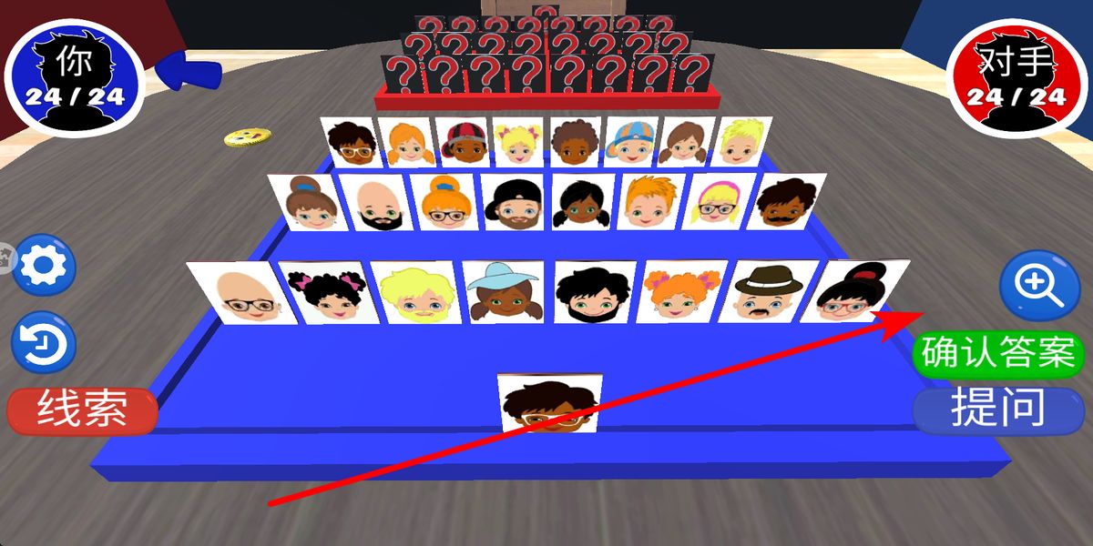 1、进入游戏后,可选择单人或双人模式,确定模式后进入挑战界面,此时会看到题目区域、线索按钮与确认答案按钮,做好答题前的准备。