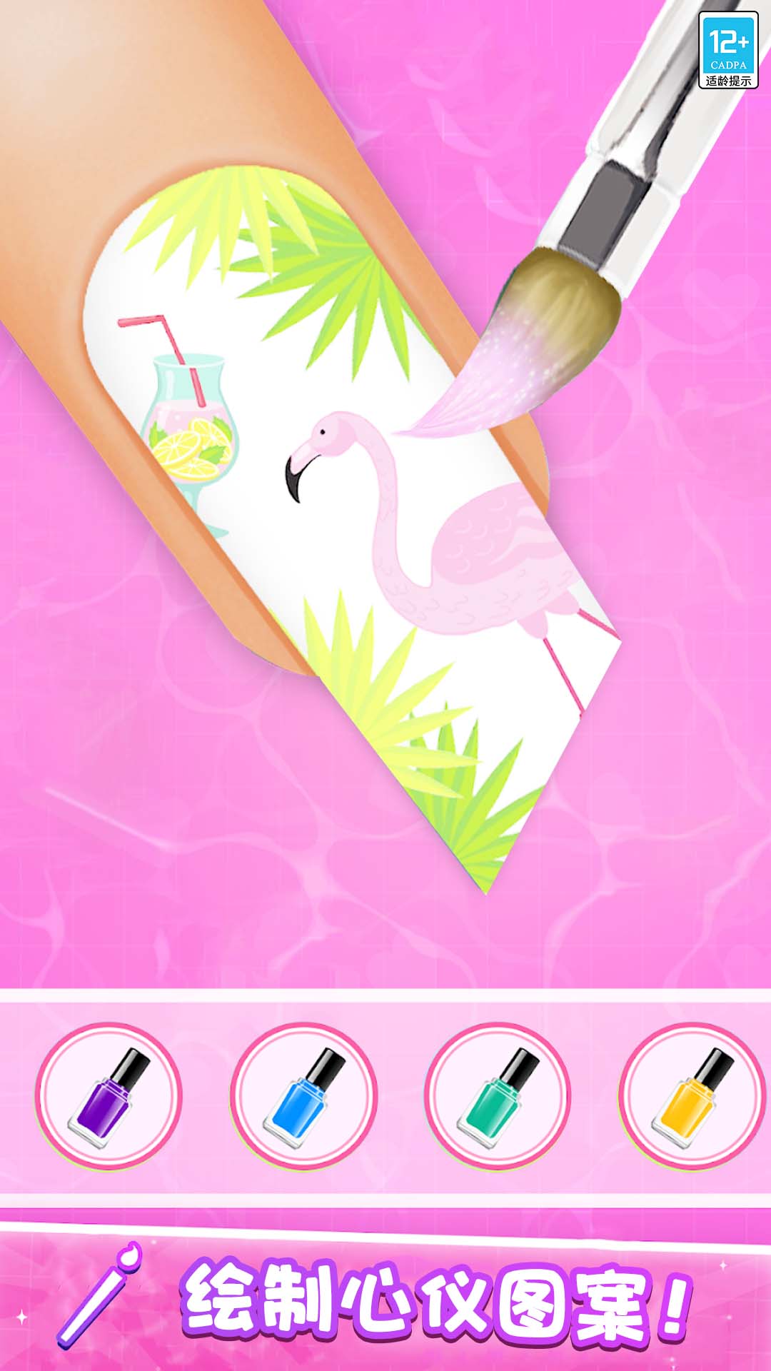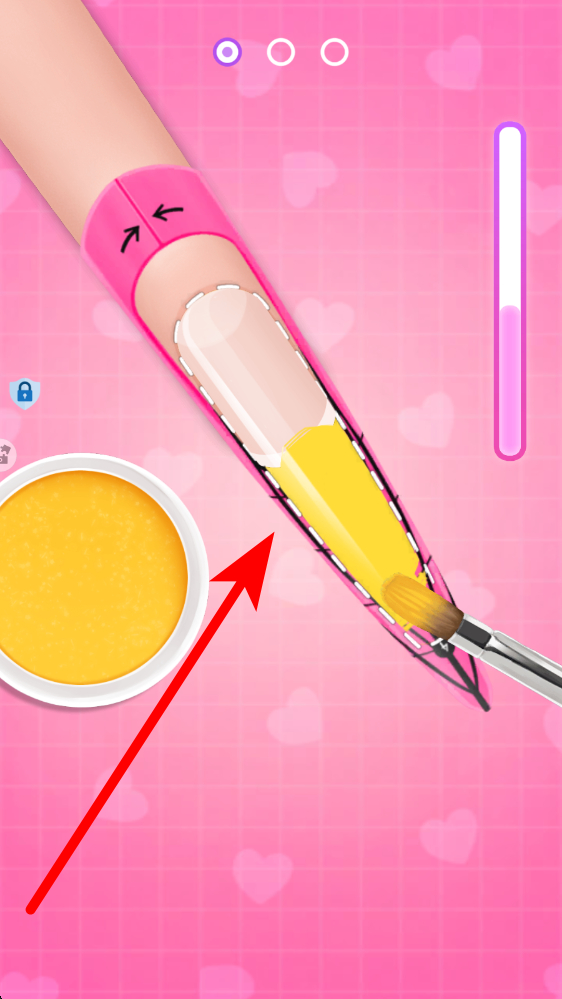 2、涂抹甲油时要留意指甲的形态与涂抹范围,按照游戏给出的区域提示进行操作,让甲油精准涂在指甲部位,不超出边缘,这样美甲的初步效果会更整洁美观。
