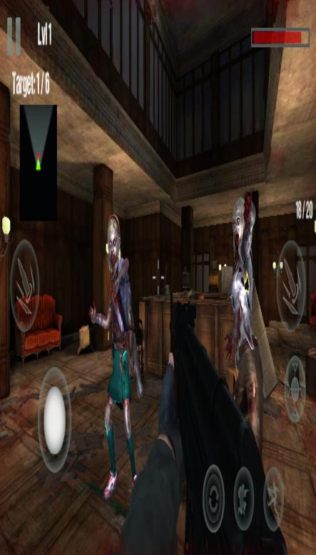 1、第一人称FPS视角的精准射击:以传统第一人称FPS射击视角为核心操作模式,配合真实的枪械音效与后坐力反馈,通过灵活调整视角与射击节奏,应对不同僵尸进攻。