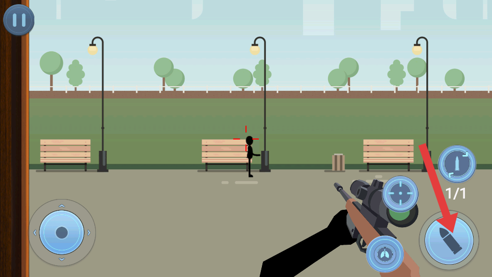 2、核心的玩法在公园、城市街道等场景中,瞄准并射击指定火柴人目标,任务完成后弹出任务完成提示,结算任务奖励。