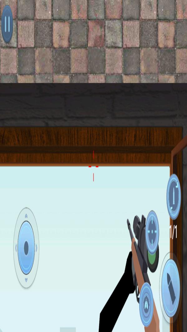 1、左侧设虚拟摇杆,右侧配备带子弹、瞄准镜图标的功能按键,用于完成瞄准、射击动作,通过与按键实现射击操作。