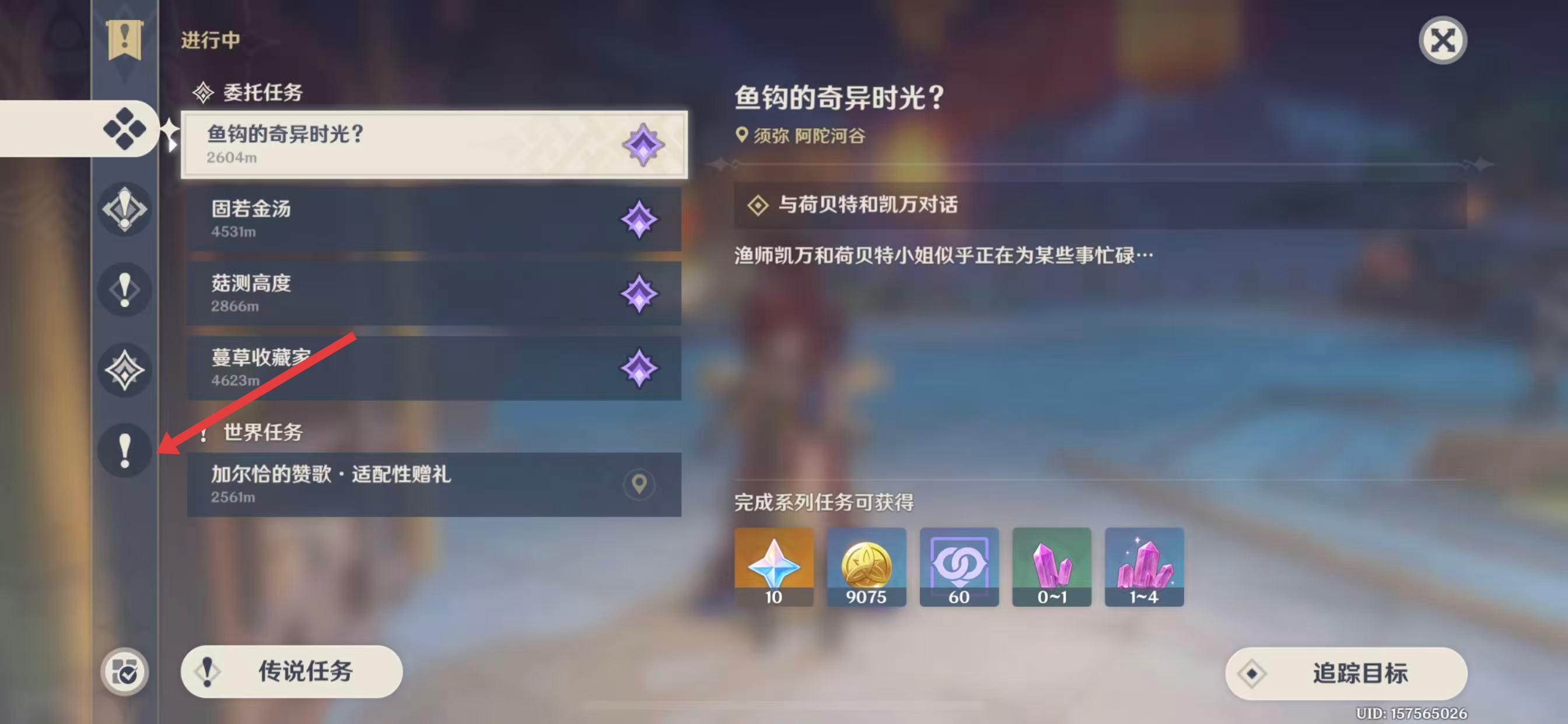 2、在任务列表界面,点击左侧带有感叹号标识的世界任务分类,找到想要追踪的世界任务。