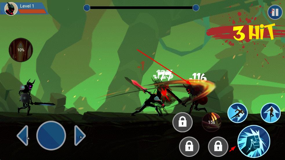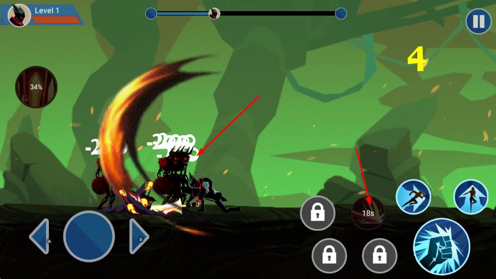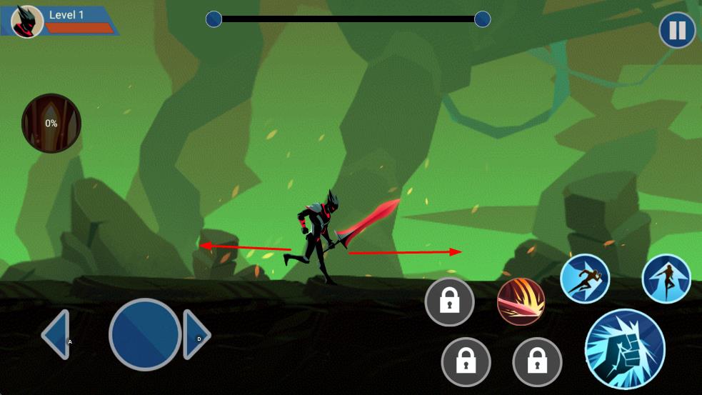 1、进入Level1后操控角色左右移动,在奇幻风格场景中探索,开启格斗冒险之旅。