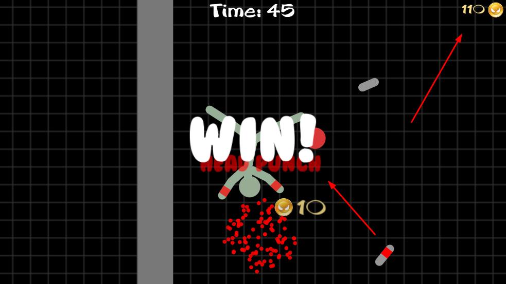 3、持续与对手战斗,直至击败敌人,界面显示WIN!,获取胜利,同时还能获得金币奖励,提升游戏进度。