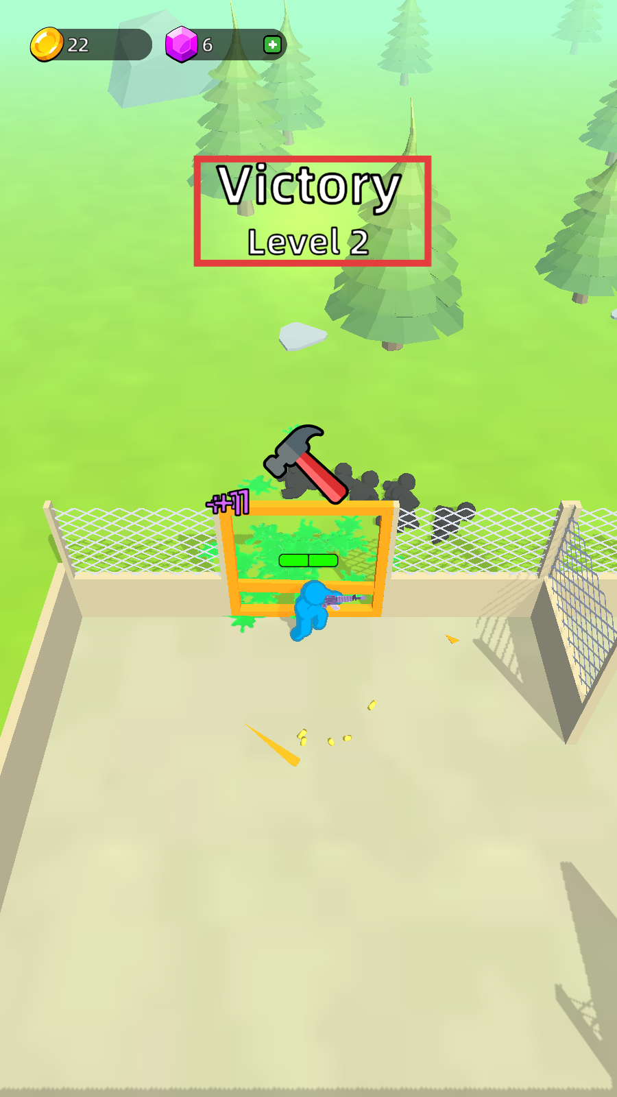 4、成功抵御敌人进攻后,会显示【Victory-Level-2】,此时可利用工具加固围栏,为下一关做好准备。