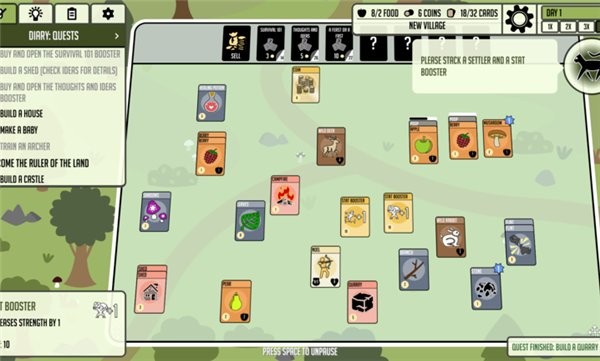 堆叠村庄官方(Stacks:Village!)作为一款将卡牌管理与生存策略相结合的手游,在游戏里玩家需要在荒野森林中建立并发展村庄,并通过收集和使用各种卡牌来抵御敌人的攻击和保护村庄。其中,堆叠村庄手游拥有超370张不同卡牌等待用户收集和使用,而你需巧妙 “堆叠” 和组合这些卡牌,来完成建造、资源生产、探索和战斗,最终击败强大BOSS。