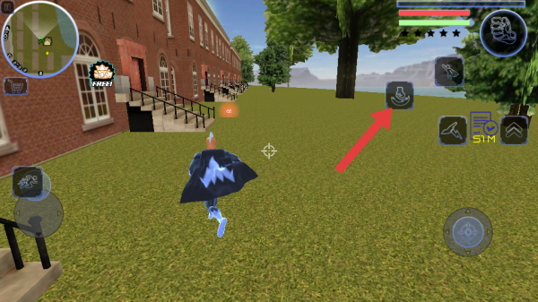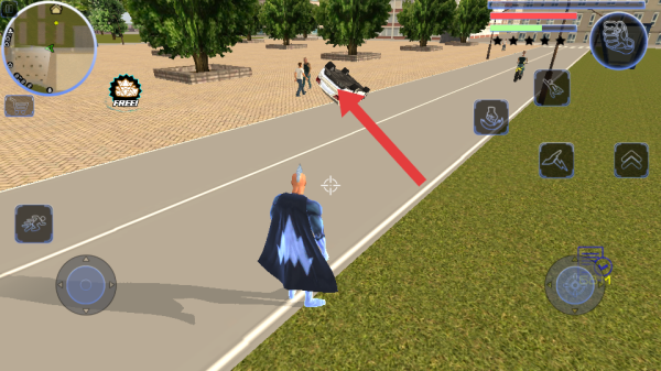 1、参与者操控超英角色,借助虚拟摇杆熟悉城市街道的移动方式,同时牢记右上角拳头等技能按键的操作逻辑。