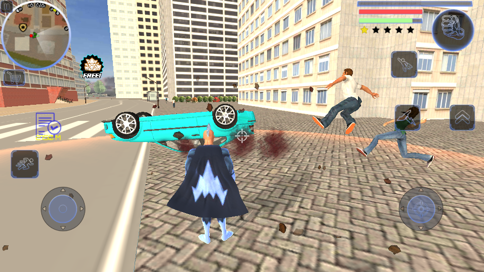 3、和行人互动时,优先靠近目标行人并通过技能按键发起攻击,完成后能够提升右上角星级的标识,推进游戏。