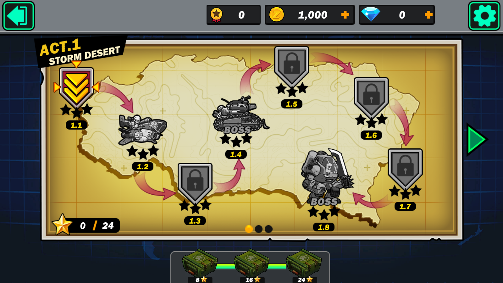 1、横版阵地战斗体验:采用经典横版视角设计,战场布局层次分明,玩家可清晰观察敌人位置与弹道轨迹,同时借助场景中的木箱、墙壁等掩体展开战术攻防。