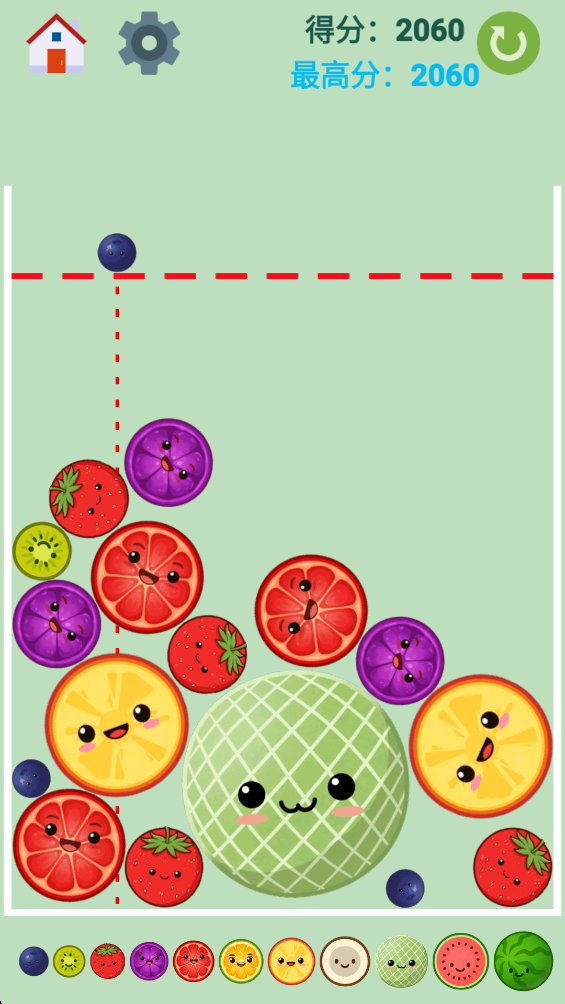 4.合成的时候需要让相同颜色,相同大小的水果放在一起,这样更容易合成。
