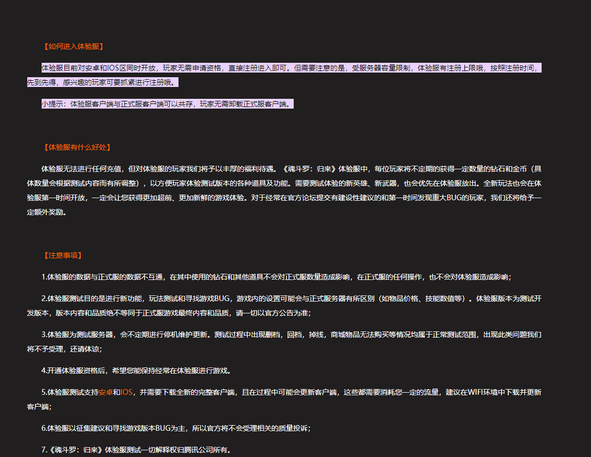 体验服目前对安卓和IOS区同时开放,玩家无需申请资格,直接注册进入即可。但需要注意的是,受服务器容量限制,体验服有注册上限哦,按照注册时间,先到先得,感兴趣的玩家可要抓紧进行注册哦。