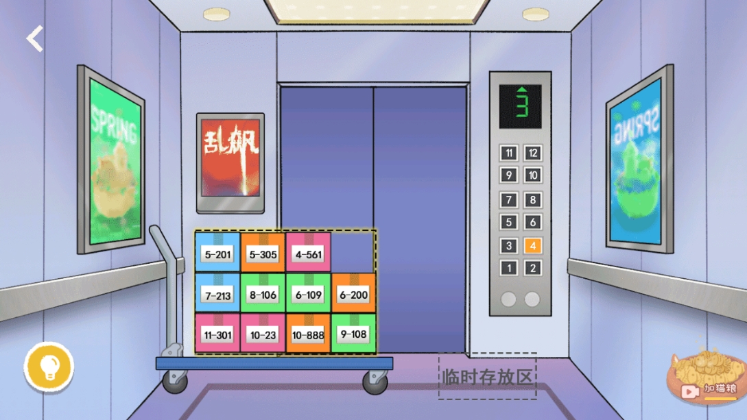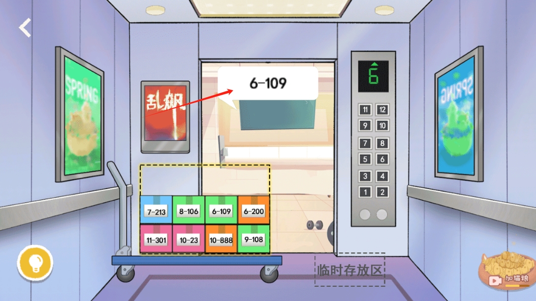 2.进入以后,玩家需要将这些快递放好,最前面的数字代表楼层,将最前面的数字由高到低依次放好,就可以进入大楼;