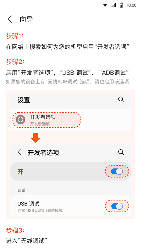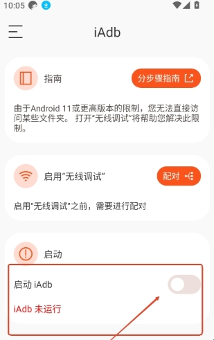 5.点击“启动iAdb”按钮,确保手机已开启“开发者选项”和“USB调试”,即可成功运行并使用全部功能。