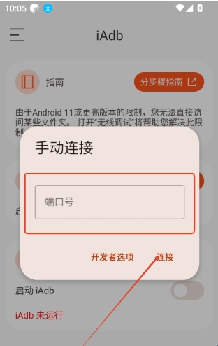 4.在连接界面正确输入ADB端口号,点击“连接”建立设备通信通道。