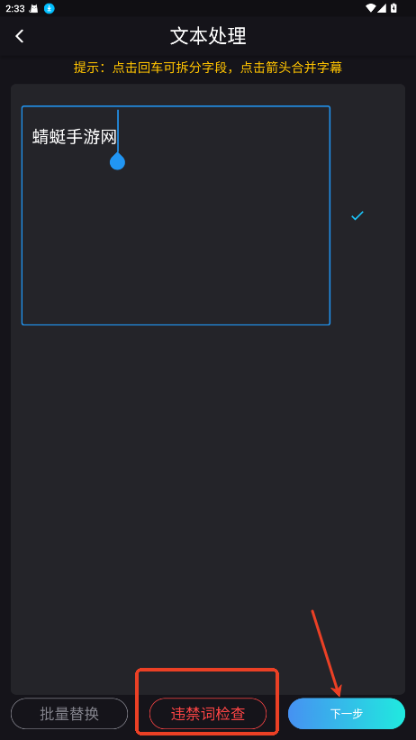 3.可检查违禁词,检查无误后点击下一步