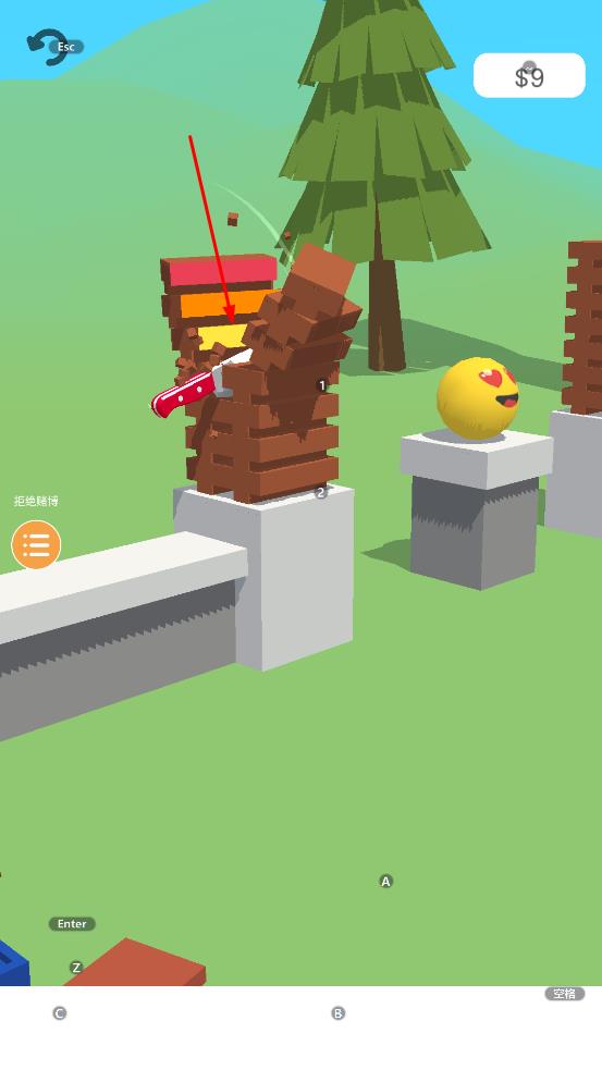 2、瞄准棕色积木堆等目标投掷刀具,成功破坏后可获取金币奖励,逐步积累游戏内货币。