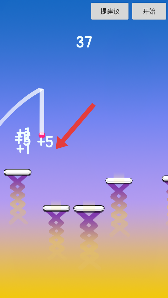 2、中心落点与积分奖励:设计“平台中心额外积分”机制,玩家需精准控制跳跃力度与方向,让角色落在平台中心位置,即可获得额外积分,为追求高分玩家提供更高目标。
