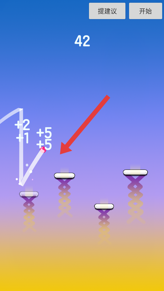 2、弹跳过程中,留意屏幕上的分数加成标识,尽量让每次弹跳都能触碰到这些加成的元素,快速的累积分数。