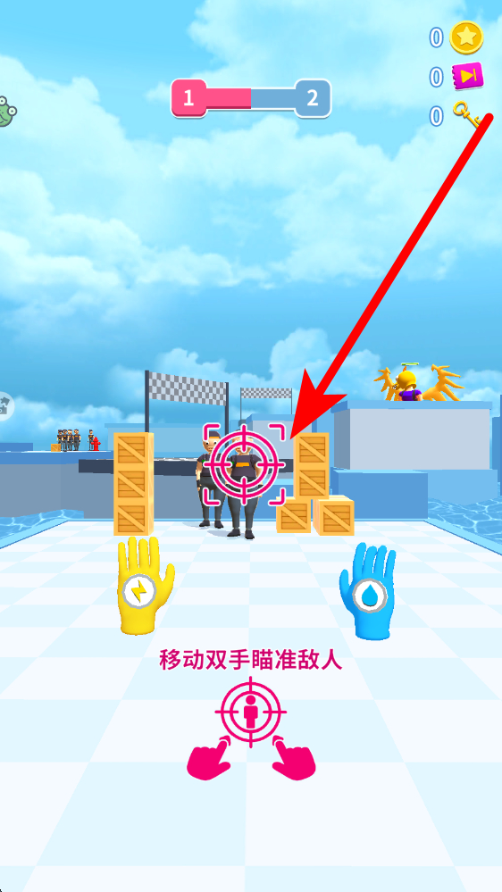 2、掌握左手移动后,会出现移动双手瞄准敌人的提示,此时新手要协调双手移动,将瞄准框对准敌人,准备发起攻击,提升准确性。