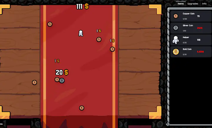 幸运硬币是一款简单有趣的休闲养成作品,玩家进入后需先设定明确目标,比如赚取特定数量的金币,随后通过不断点击屏幕让硬币持续翻转,当硬币翻至正面时即可获得金钱,随着金钱积累到一定程度,还能选择购买硬币、小白人、银币、金币等不同内容,这些物品能有效加快金钱获取速度。