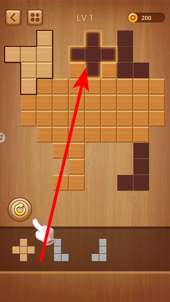 1、经典拼图内容:基于传统方块拼图机制设计游戏内容,玩家需要通过旋转移动不同形状的方块填补空缺,完成指定的图形拼合目标。
