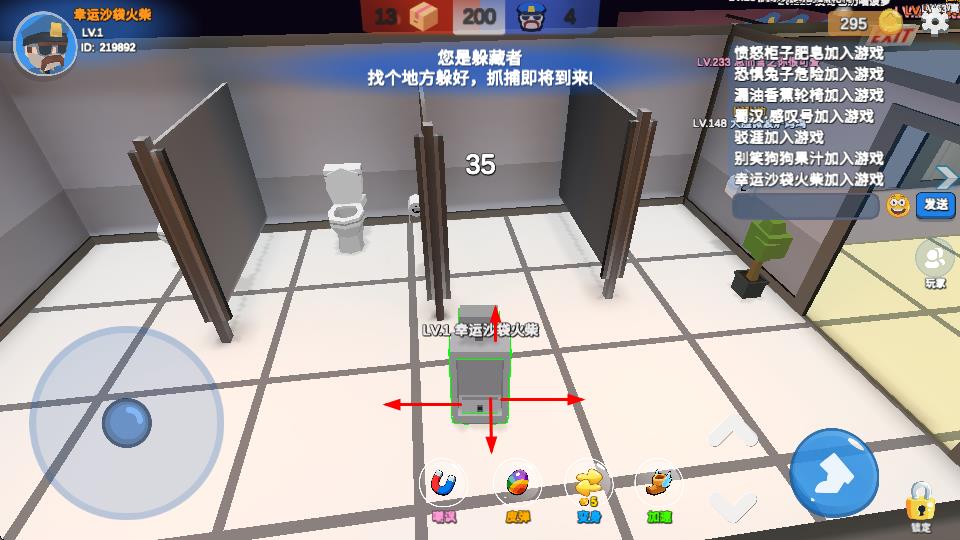 3、寻找者攻击甄别目标:寻找者在场景内巡查,观察可疑物品并发起攻击,若击中躲藏者则淘汰对方,若误击普通物品则自身扣血,需在血量耗尽前找出所有躲藏者。