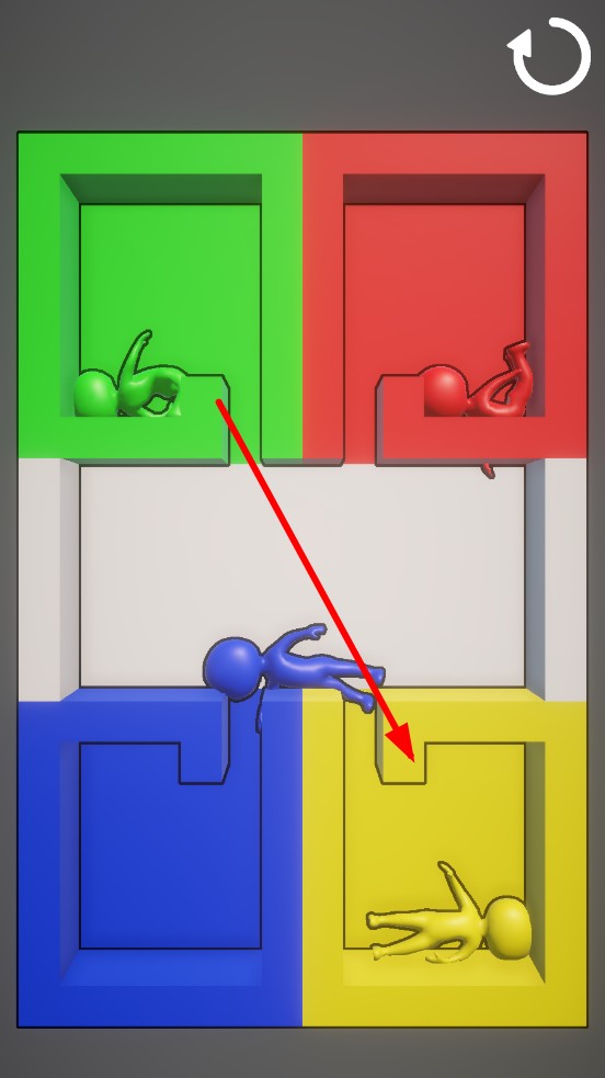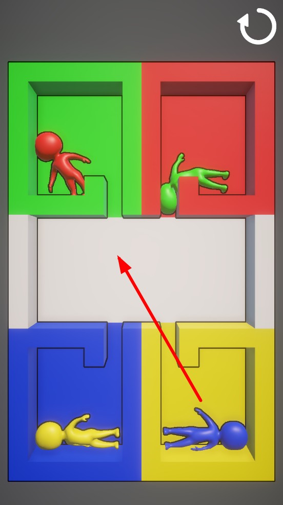 2、整理途中,拖动同色果冻到相应的凹槽中,用力拉扯,将果冻人扯出原本的凹槽中,再塞入相应凹槽里。