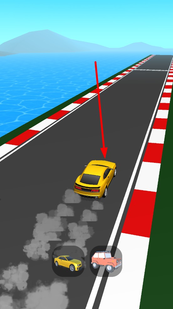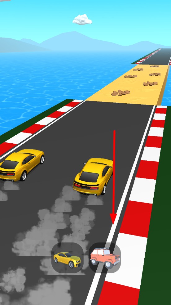 2、竞速中,沙地里使用越野车,平坦的大道上则立马改用小汽车,切换之间超过对手,将对手甩在身后。