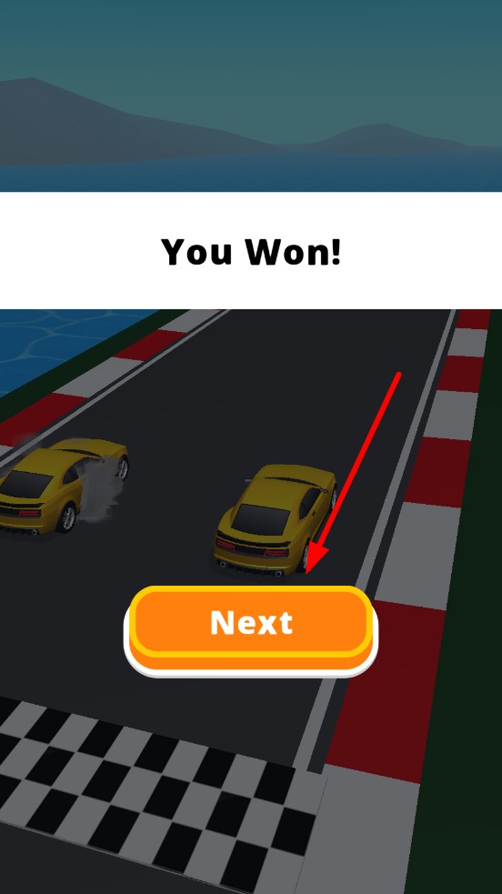 3、前期操作正确的话,直接冲线,稳稳将第一名揽入怀中,点击继续,开启下一关,解锁更复杂的赛道。