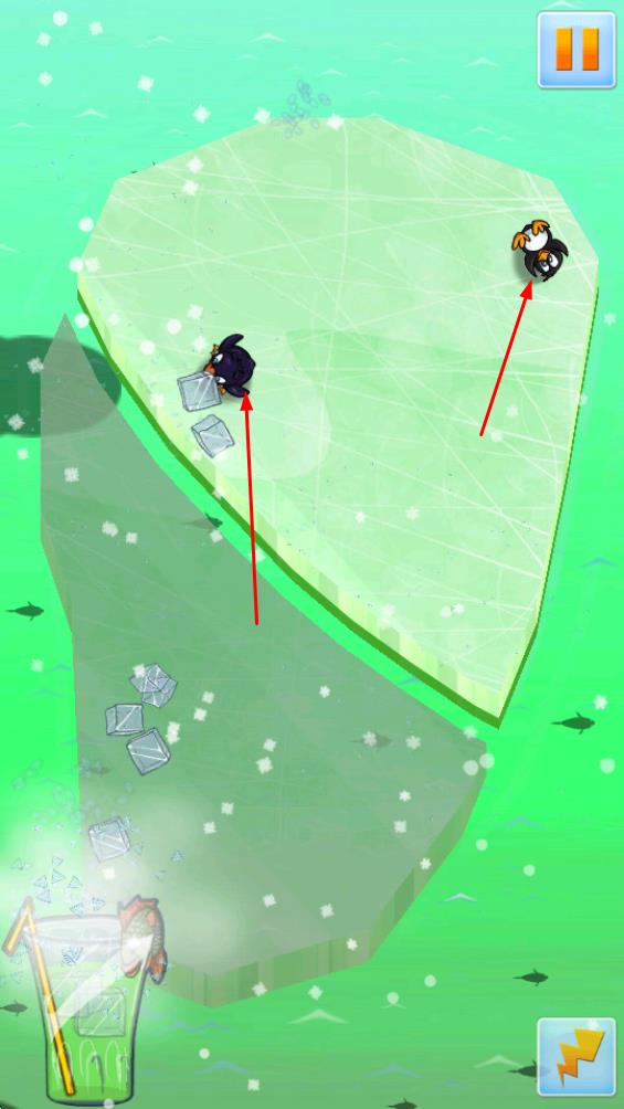 - 冰块切割是一款以冰雪场景为背景的趣味休闲作品,核心目标是在不伤害场景中企鹅的前提下,通过切割冰块让冰水装满左下方的杯子,操作过程中,企鹅会在场景