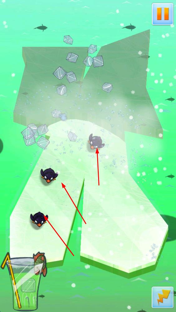 1、观察时机切割冰块:进入关卡后,先观察企鹅的奔跑轨迹与速度,待企鹅移动到安全区域时,快速切割冰块让冰水流入杯子,需反复调整切割时机,避免在企鹅靠近时下刀。