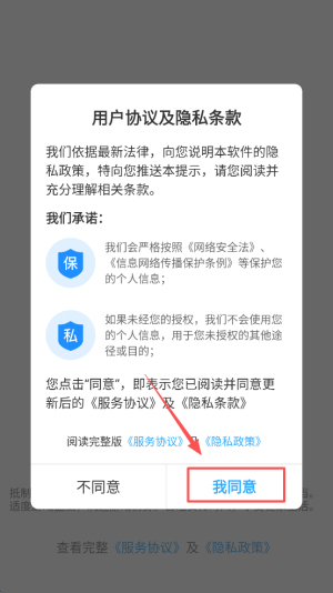 1、首先,阅读并同意用户协议及隐私条款,点击“我同意”进入游戏。