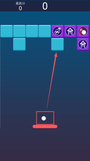 3、然后,通过点击屏幕控制弹板,使球弹跳并击中方块。