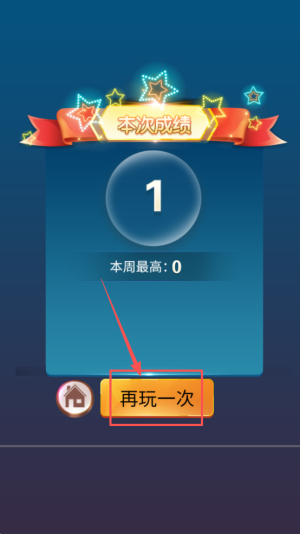 4、最后,游戏结束后,点击“再玩一次”按钮,重新开始游戏或挑战更高分数。