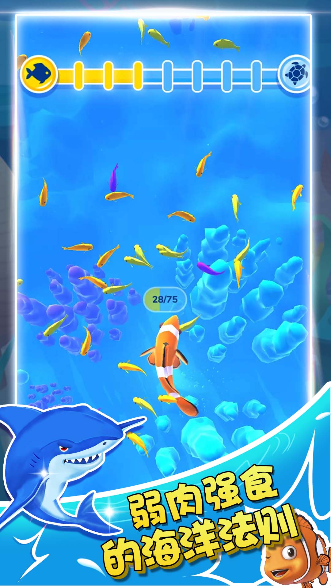 2、每条鲸鱼都有大白鲨等着你去发展,成为大海的主人,更多玩法等你体验。