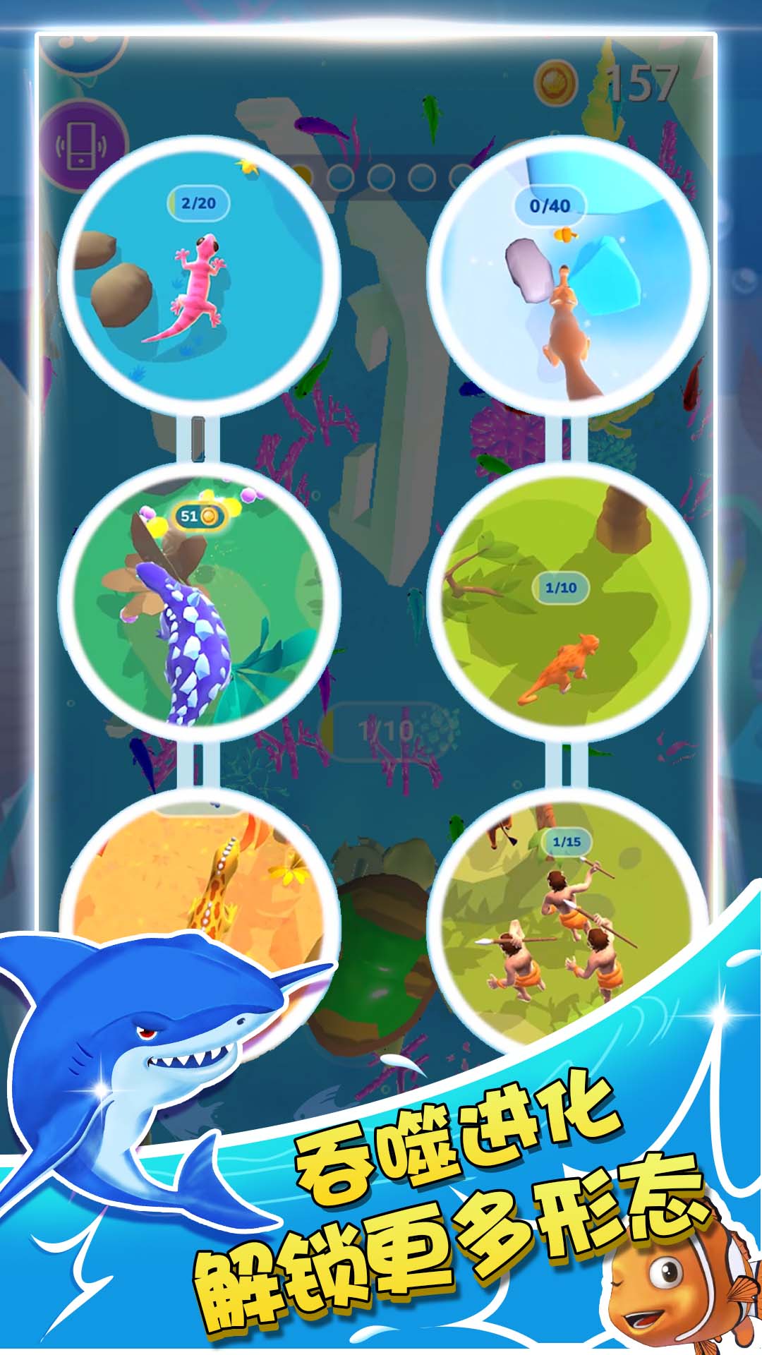 3、很多不同的海洋生物等着你去解锁,解锁不同的人物也有丰厚的奖励哦。