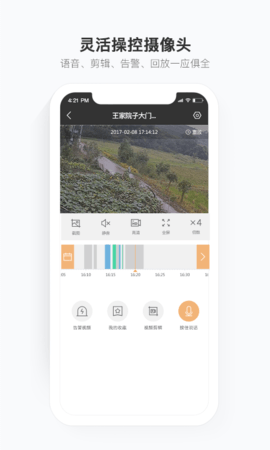 灵活操控你的摄像头,语音、剪辑、告警、回放功能一应俱全,该有的功能都有。
