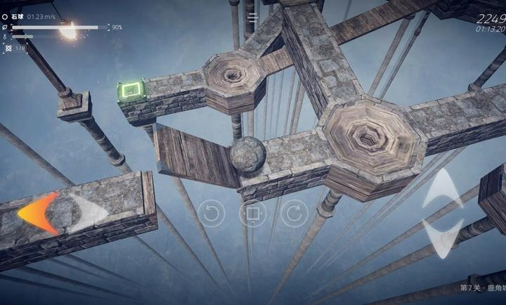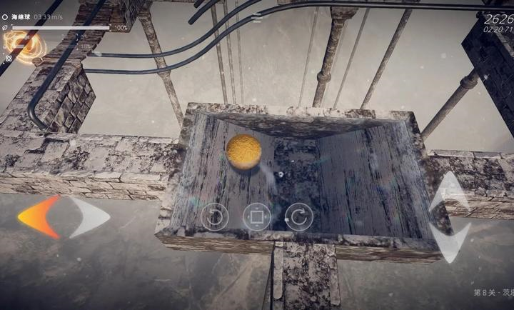 2、挑战中操控【木球】,利用左右两侧的箭头按钮,控制木球移动,朝着目标区域前进。