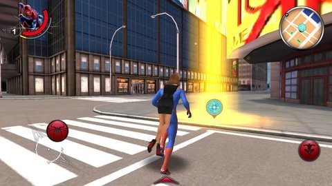 他会让你到指定的械斗位置救一个人,到达下个黄色圈圈后,会提示你尝试用蜘蛛视力锁定敌人,用shift键锁定敌人后,又会提示左右移动鼠标确定敌人选取,蓝色同盟,红色敌人。结束操作示范后即可开始攻击,可以用F蛛丝弹射封锁敌人的枪,然后慢慢扁到爽为止,第三个主任务结束。如果想多拿打击点数,也可以多到城里的械斗地点“调停”一下,顺便找下蜘蛛徽标来提升蜘蛛侠等级,因为是随机产生的,所以也不存在标注位置之说。