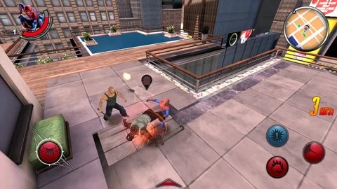 手游采用触屏按钮式操作,默认左手为蜘蛛人的方向,右手按钮为攻击、跳跃、闪避等功能键。配合连续按压,可以使出各式各样的连击以及组合技。