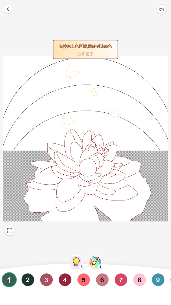 2.点击下方数字,色彩对应的地方会呈现出阴影,再点击阴影部分即可上色。