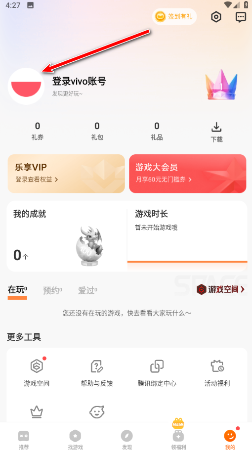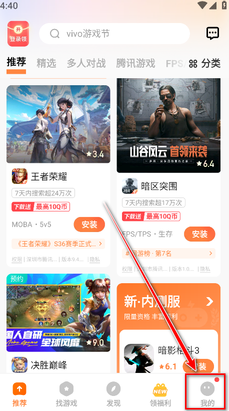 1.打开vivo游戏中心,点击右下角我的。