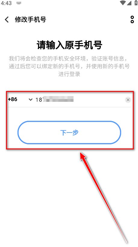 5.输入原手机号码,点击下一步。
