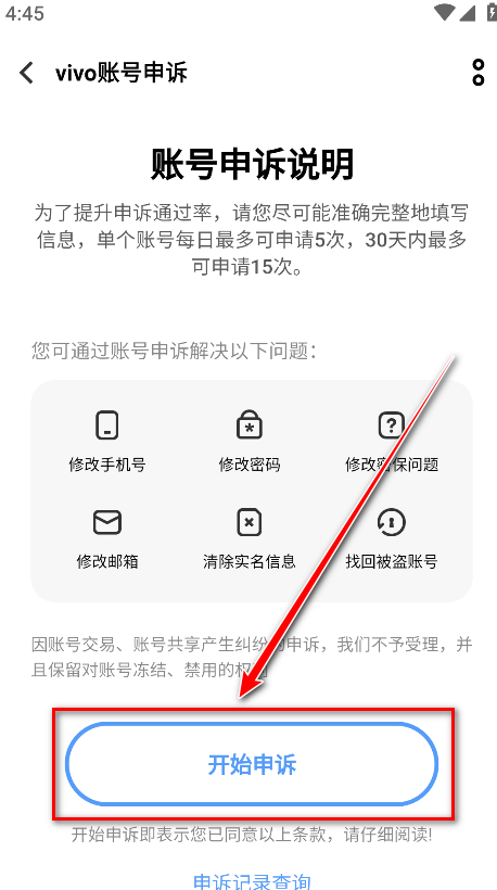 8.点击开始申诉。